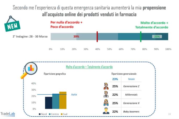 Un’opportunità di innovazione: gli autori della ricerca sottolineano come questa emergenza sanitaria sia sicuramente contribuendo ad accelerare il processo di sviluppo della multicanalità creando nuovi clienti potenziali o aumentando l’abitudine a frequentare i canali online (per esempio alla ricerca di alcuni prodotti igienizzanti o ai pulsimetri-saturimetri). Una sfida ma anche un’opportunità dunque di innovazione per molti operatori e anche per le stesse farmacie.